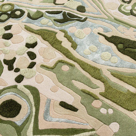 TheUnearthedcollection draws its essence from the raw, unrefined beauty of nature. Each of the eight designs echoes the irregular yet harmonious forms found in landscapes, rock formations, flowing rivers, and organic textures. With edges that defy symmetry and patterns reminiscent of earth’s layers, the carpets embody a sense of grounded artistry.