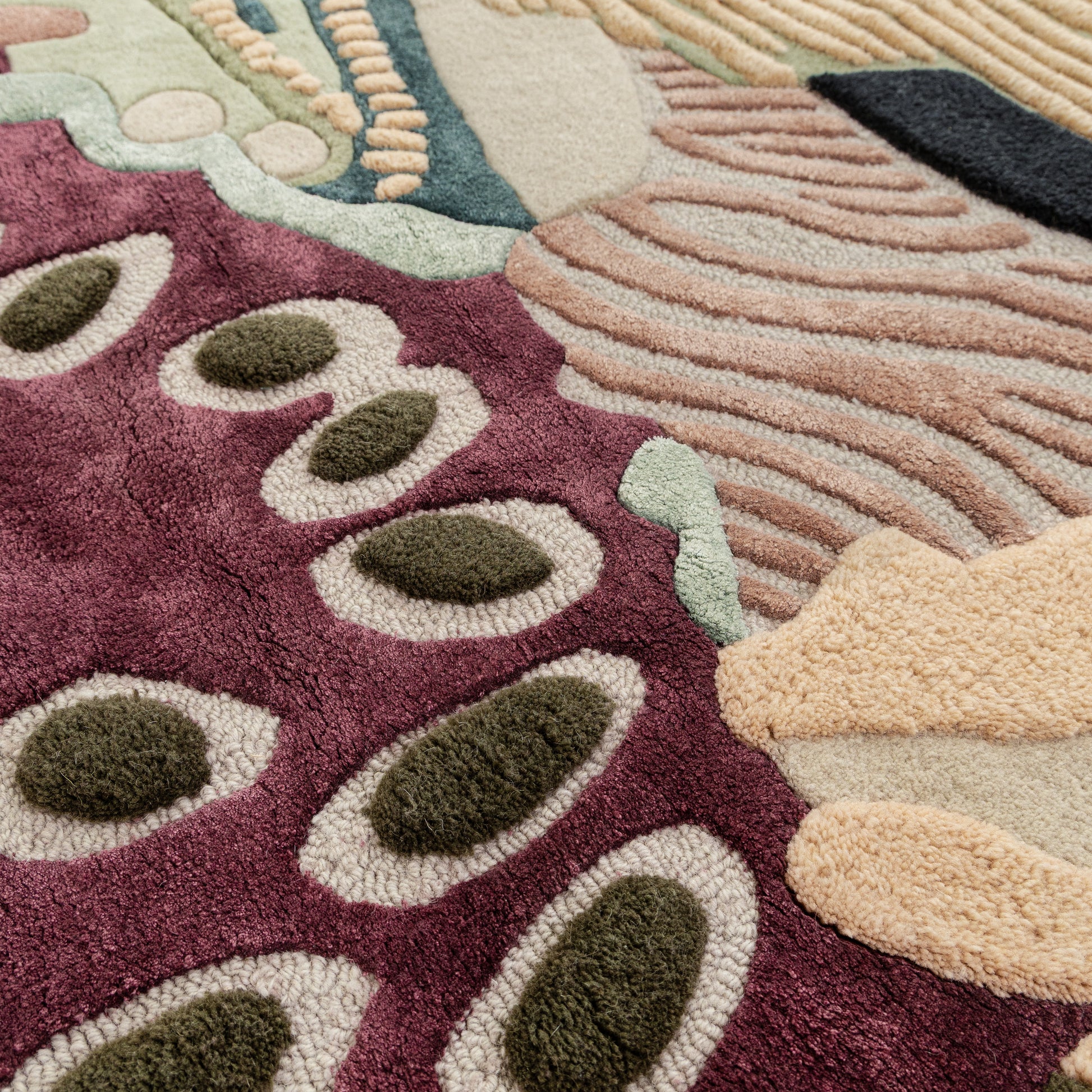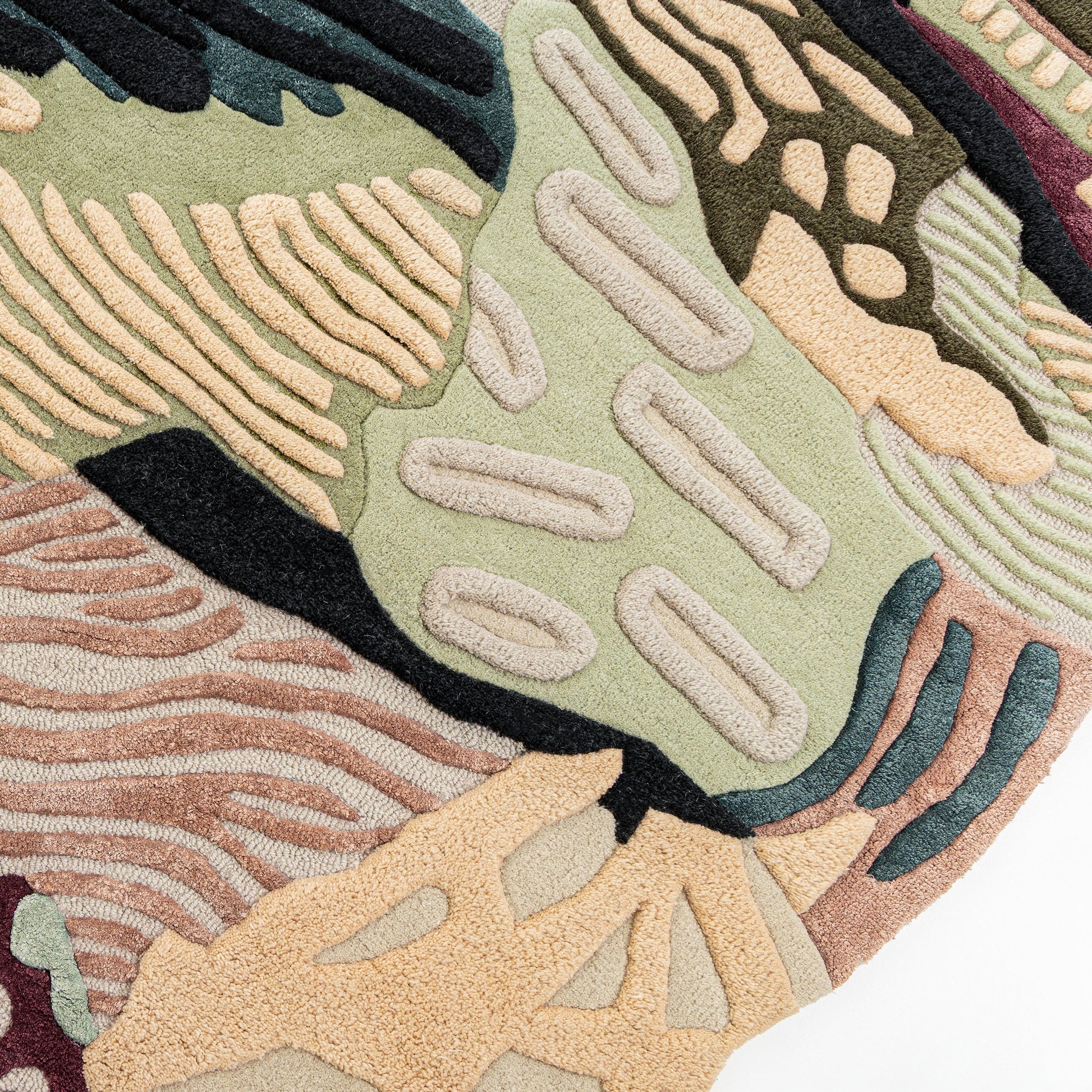 Inspired by coral reefs and ocean beds, this design mirrors the hidden beauty of underwater worlds. Organic shapes and layered textures evoke microstructures of marine life. A quiet chaos preserved in wool, patterned like evolution itself.