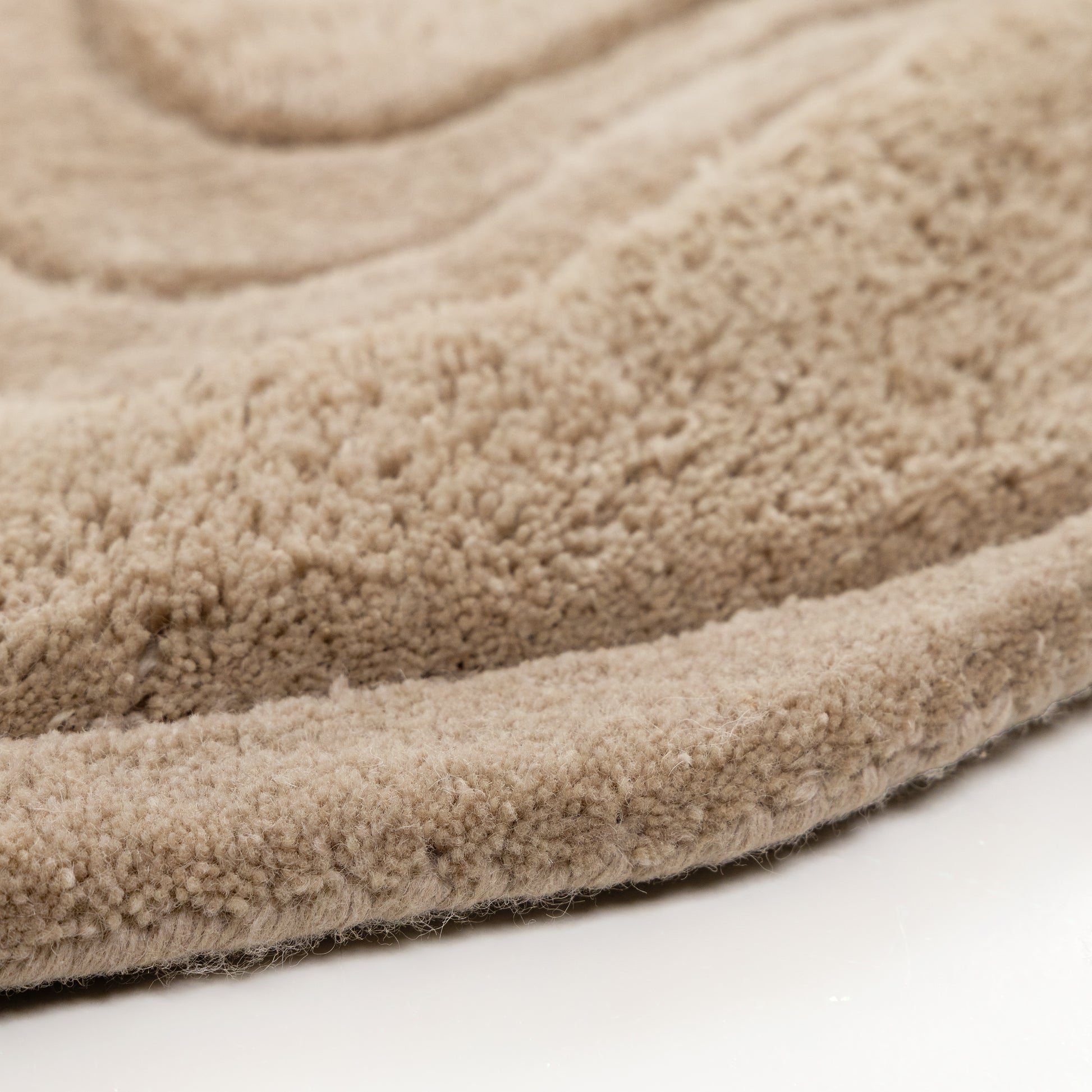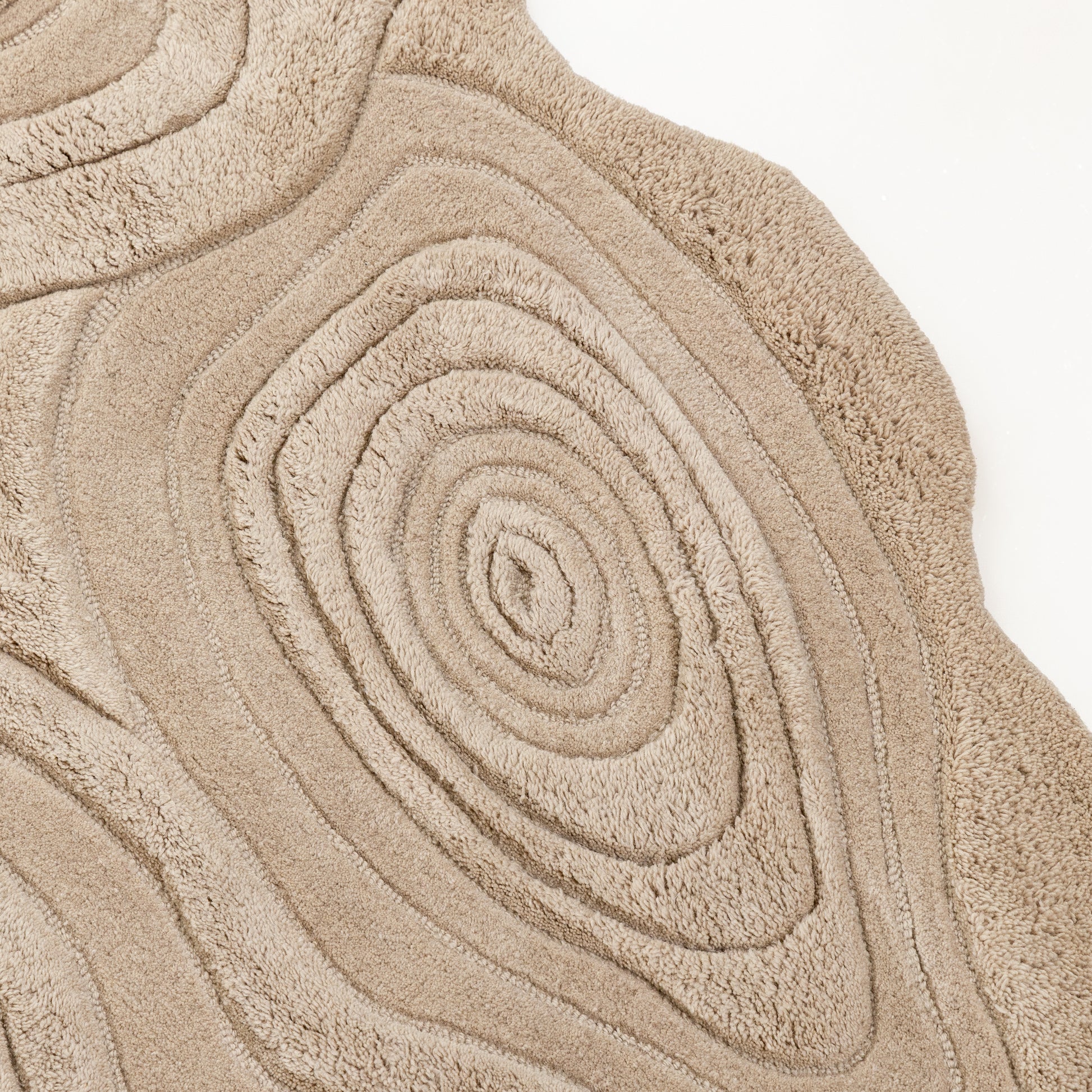 Contours ripple like topographic maps, dunes, and sound waves etched in wool. Each line tells a story of valleys and ridges shaped by time. A serene landscape beneath your feet, soft yet architectural in presence.